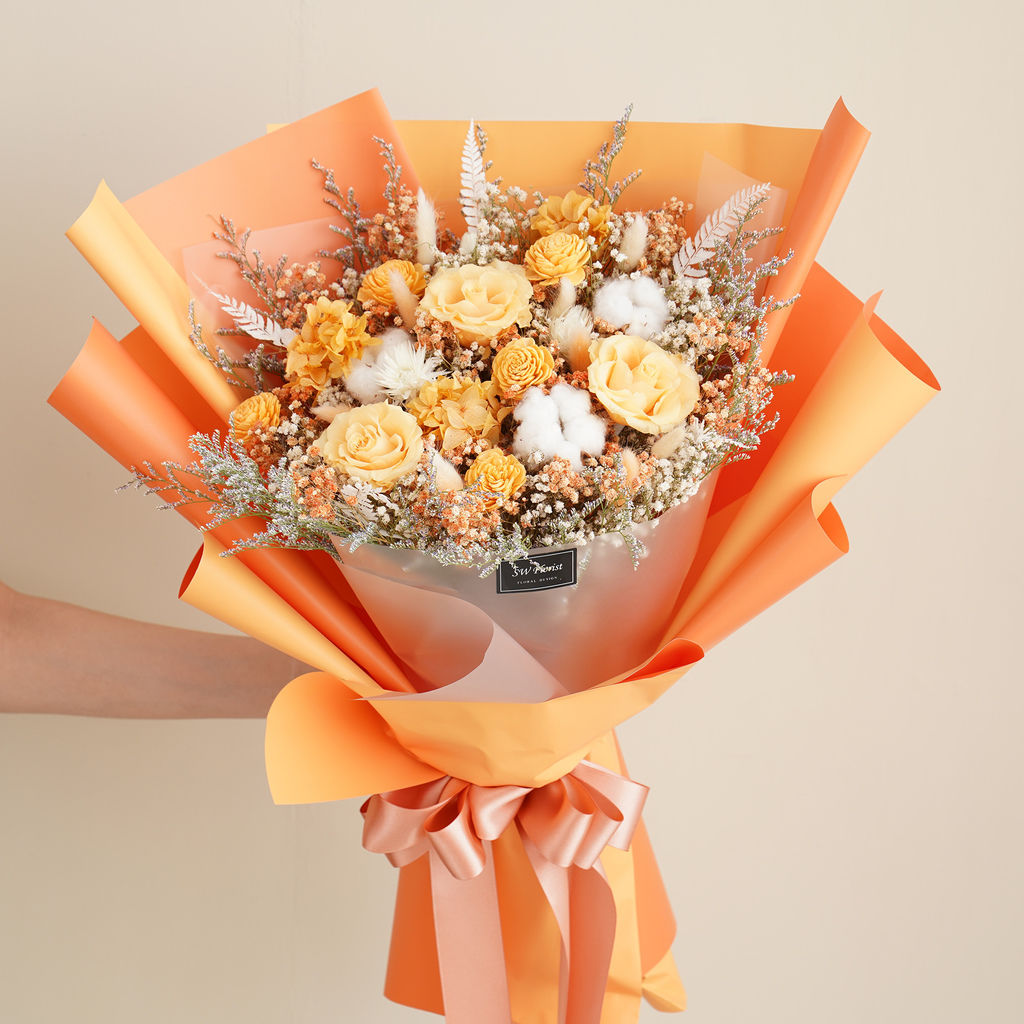 經典哈密瓜橙乾燥花束 不凋花 畢業花束 情人節禮物 求婚花束 特大花束